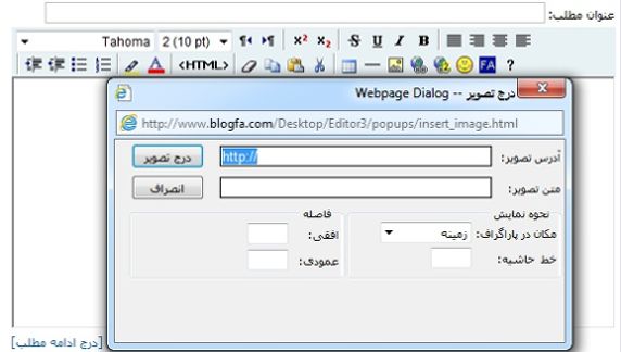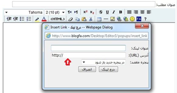 برای قراردی لینک عکس هاتون هم روی اون مربعی که عکس کوه داره وبغل دست اون کره زمین هست کلیک کنید و مثل شکل زیر آدرس آپلود عکس خود را در محل آدرس تصویر قرار داده و درج تصویر را بزنید
