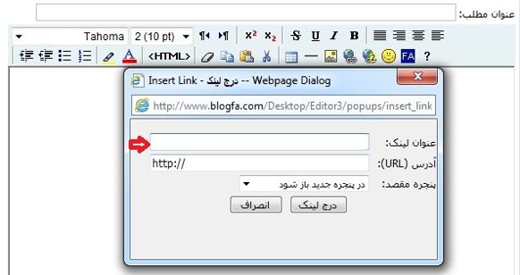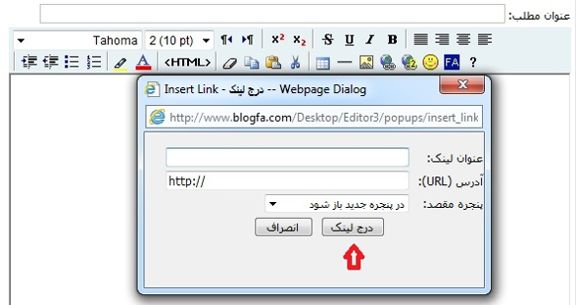 ۸:وبعد روی گزینه درج لینک کلیک کنید