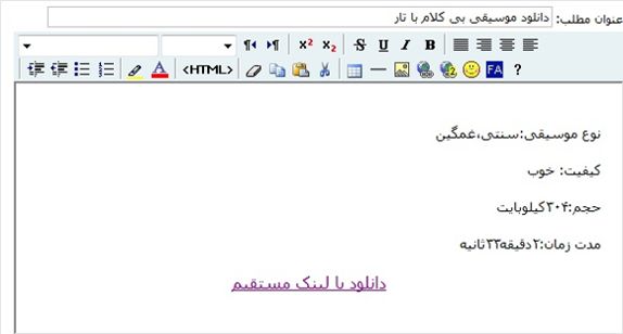 ۲:اگر دوست داشتید در مورد کلیپ یا آهنگی که می خواهید قرار بدهید توضیح مختصری مثل زیر می نویسید و بعد مثل زیر جای لینک دانلود را تعیین می کنید.